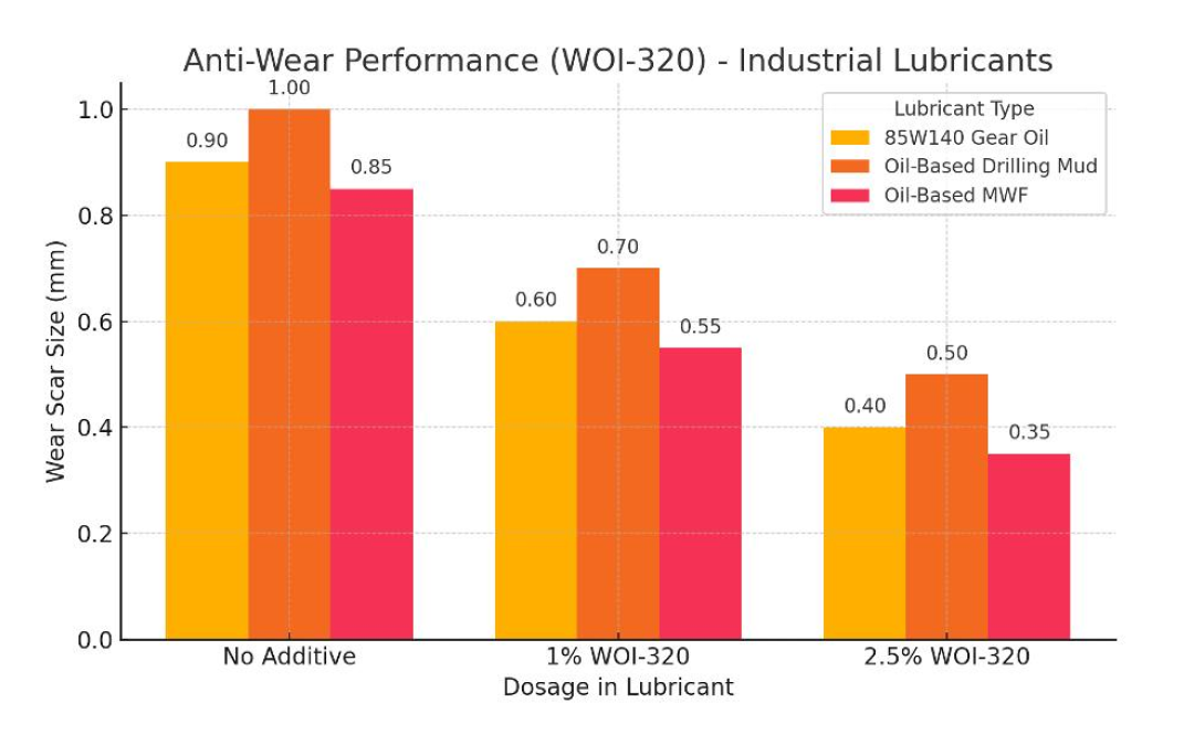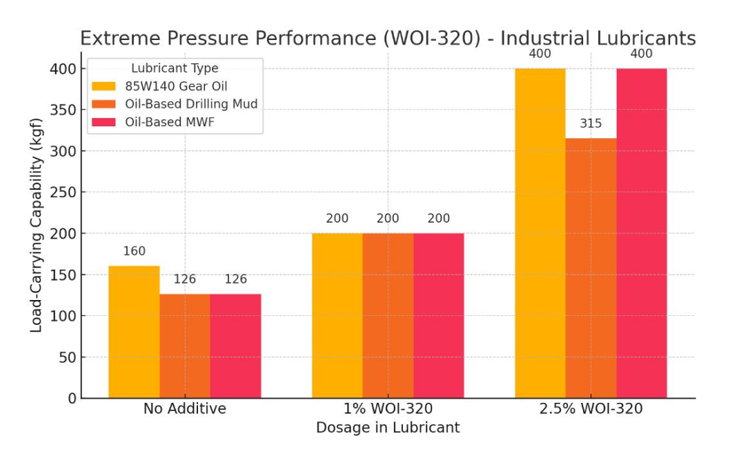WOI-320 is a highly effective phosphorus-based additive package engineered to enhance Anti-Wear, Anti-Friction and Extreme pressure (EP) performance in industrial lubricants. Designed for use in gear oils, Metal Working Fluid (MWF) formulations and drilling muds, WOI-320 delivers superior protection and performance in demanding industrial applications.