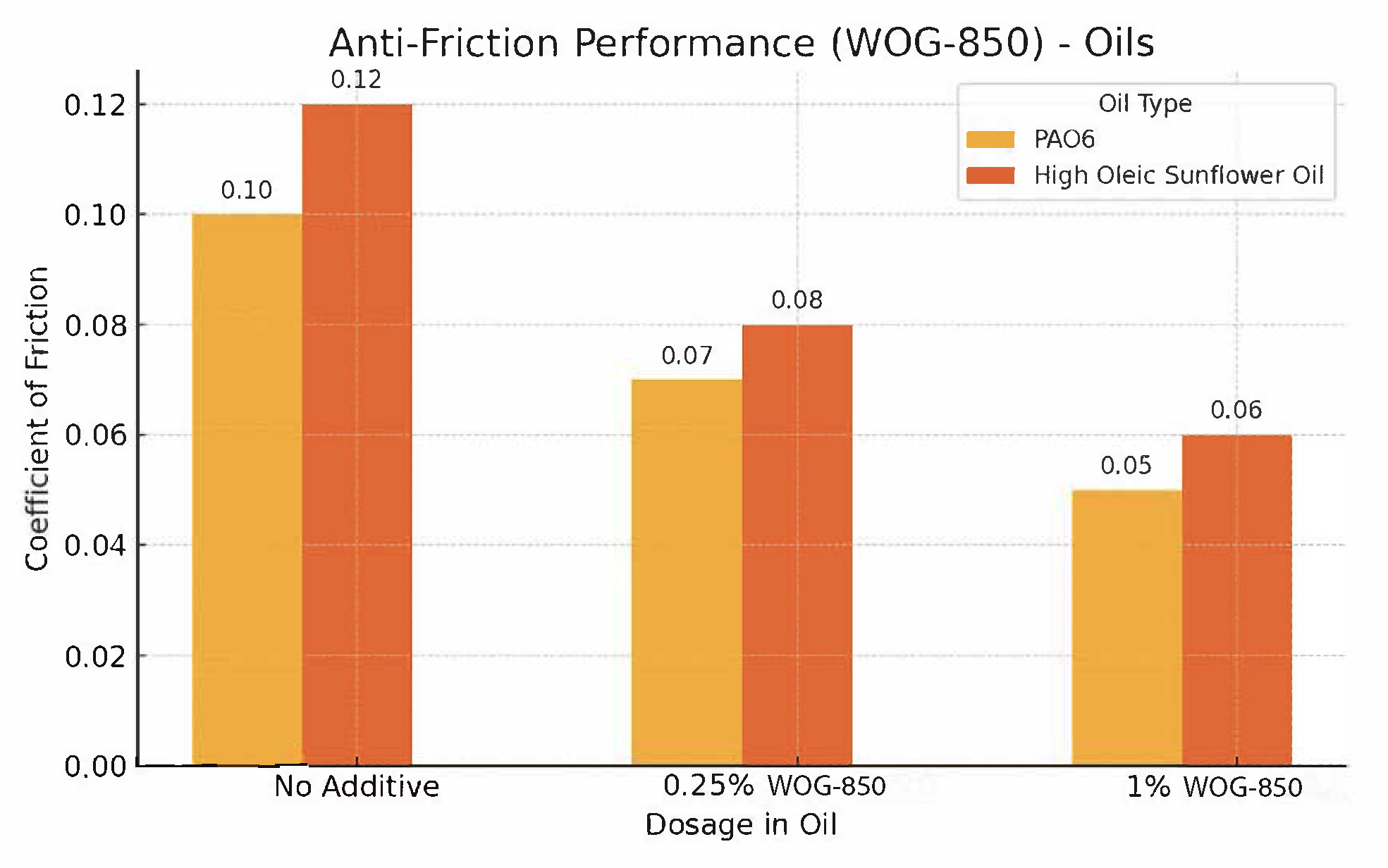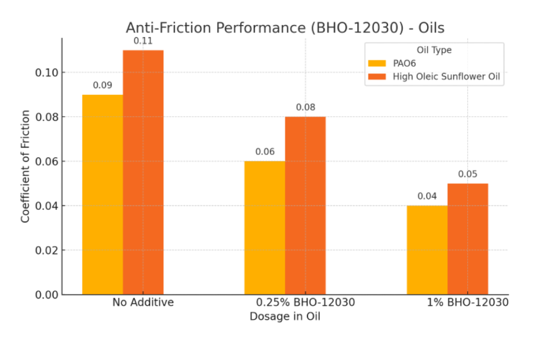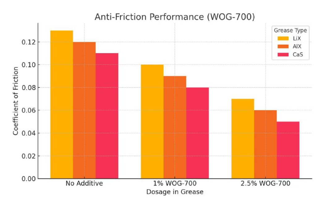 Result: Reduced coefficient of friction across all grease types, with superior performance at higher dosages.