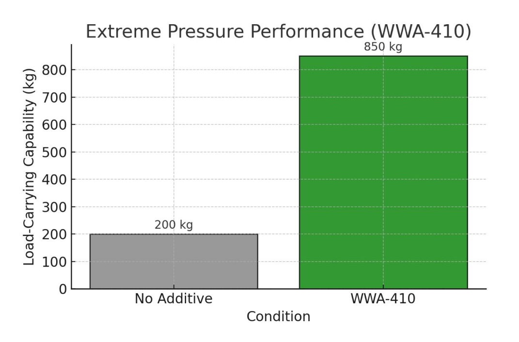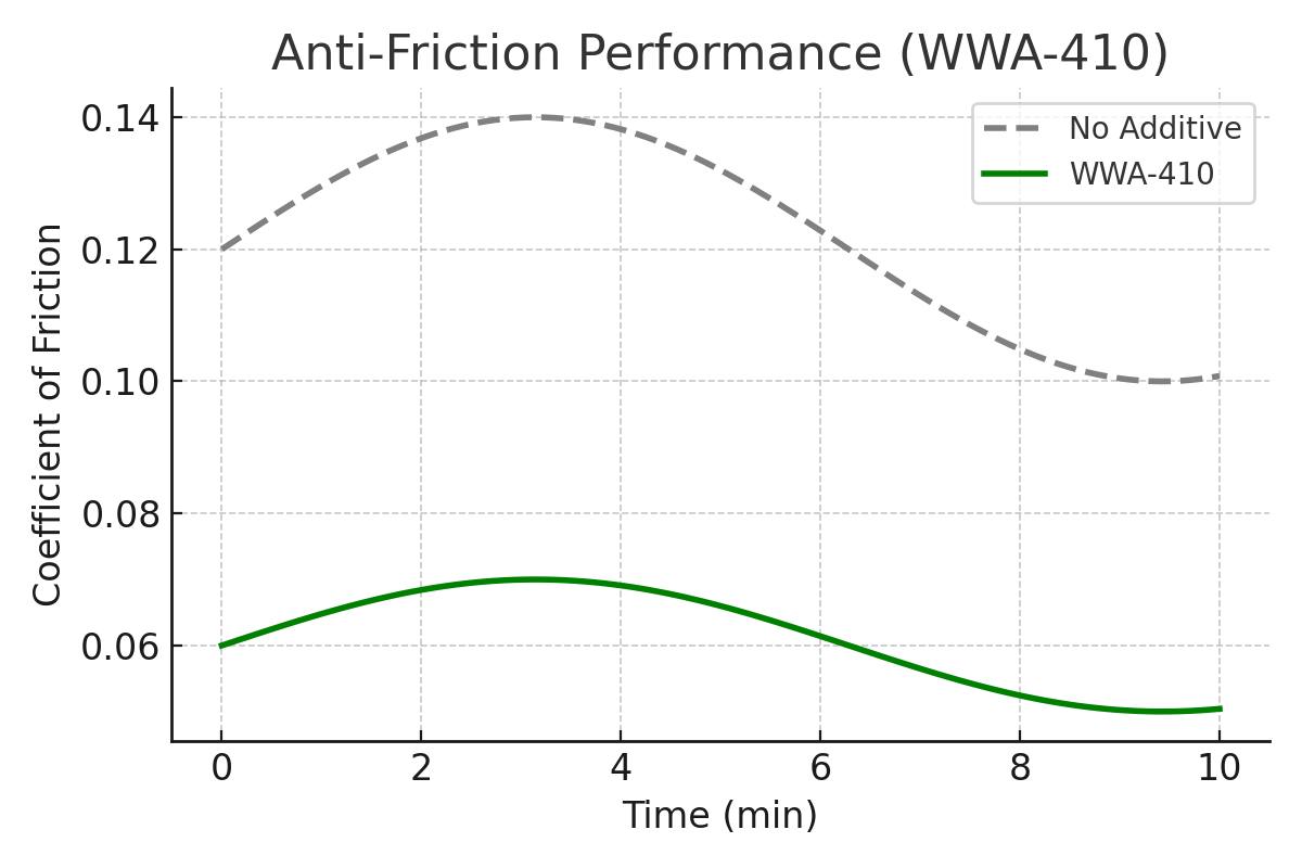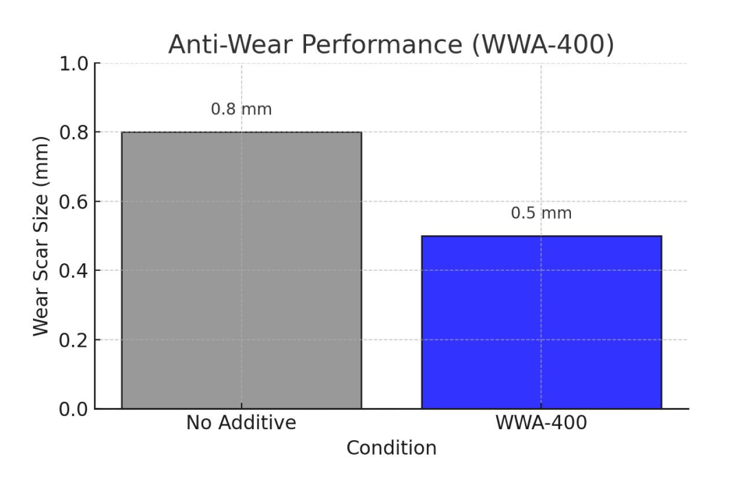 Result: WWA-410 reduces wear scar size by up to 62% compared to untreated systems.