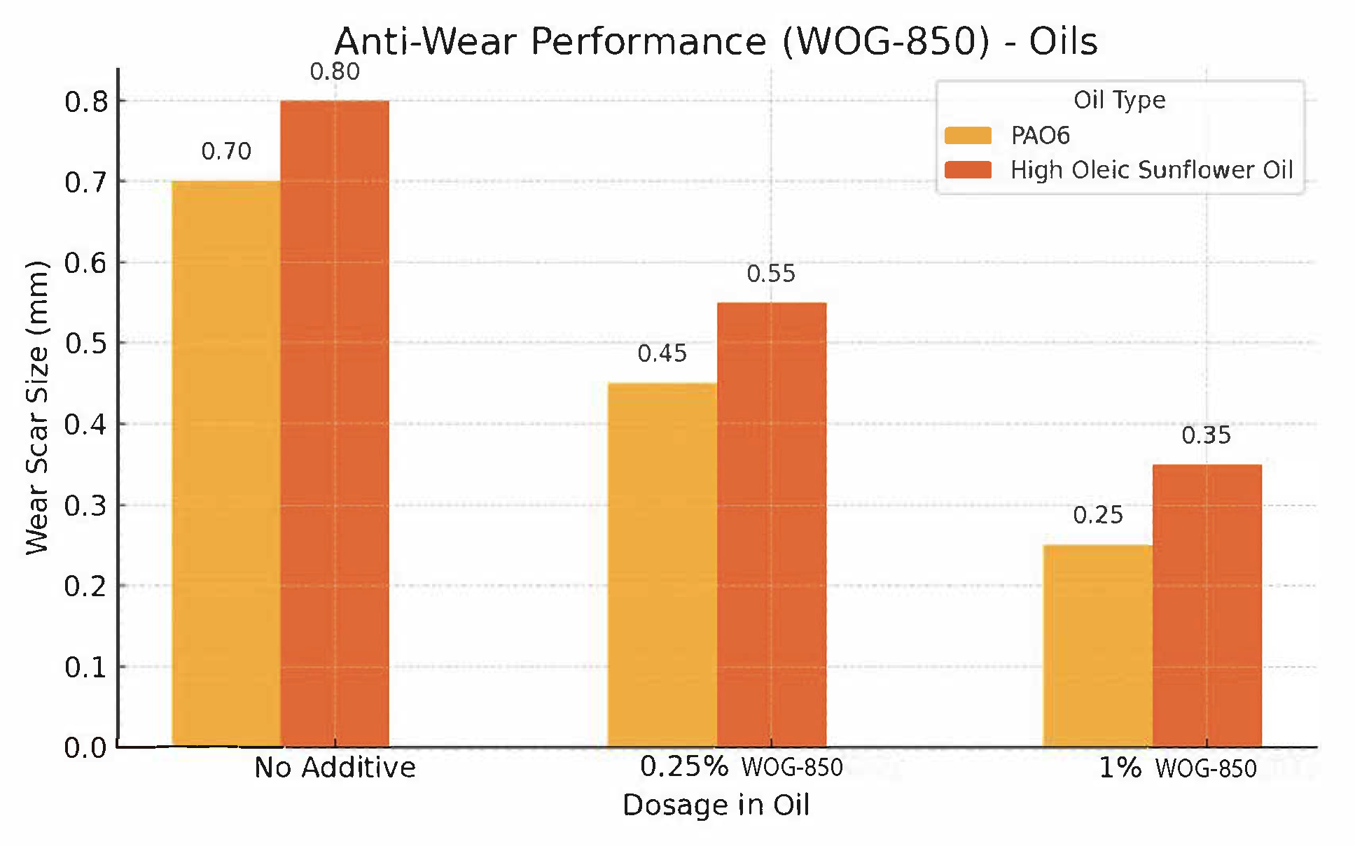 Result: Significant reduction in wear scar size compared to untreated oil